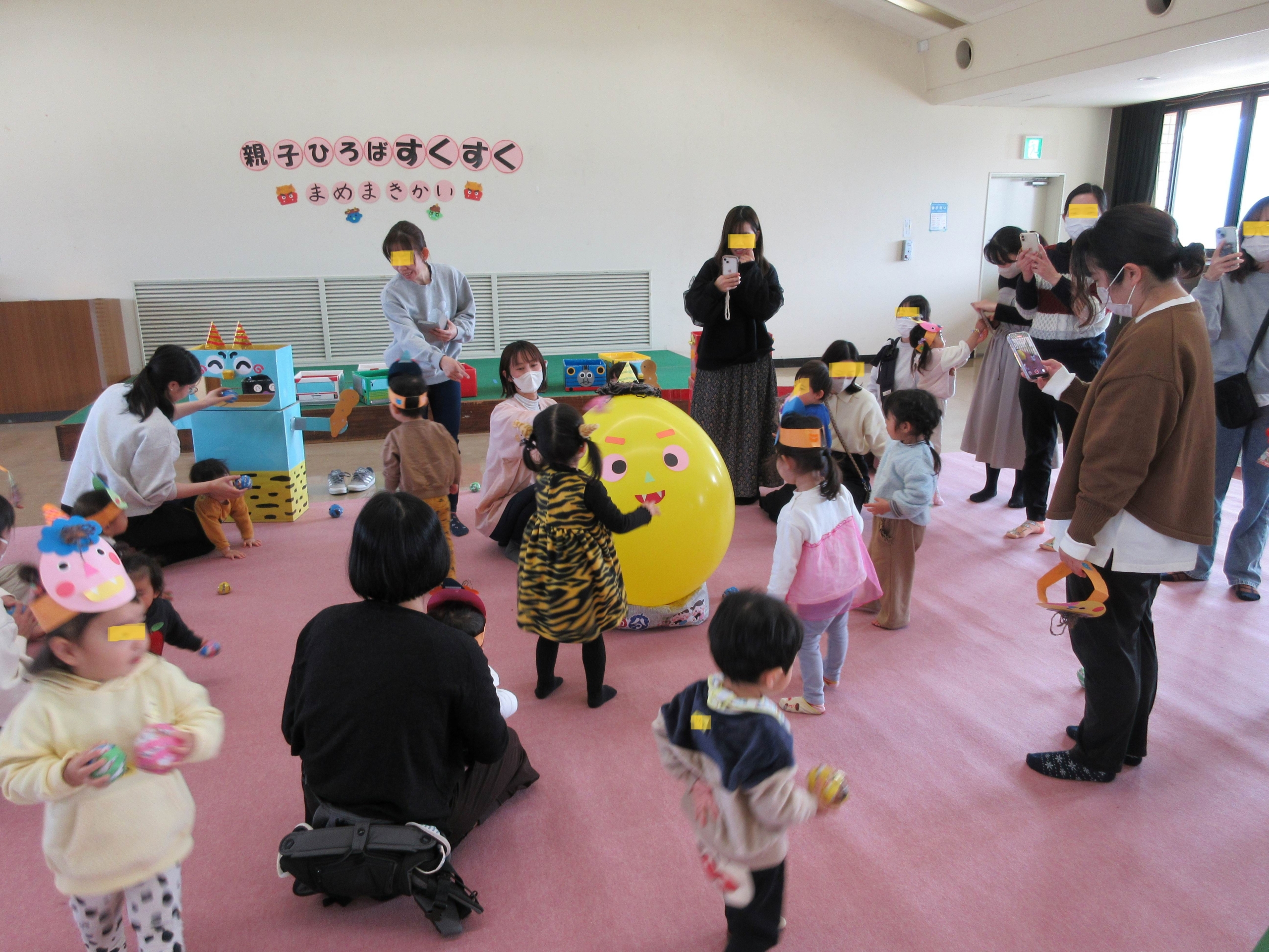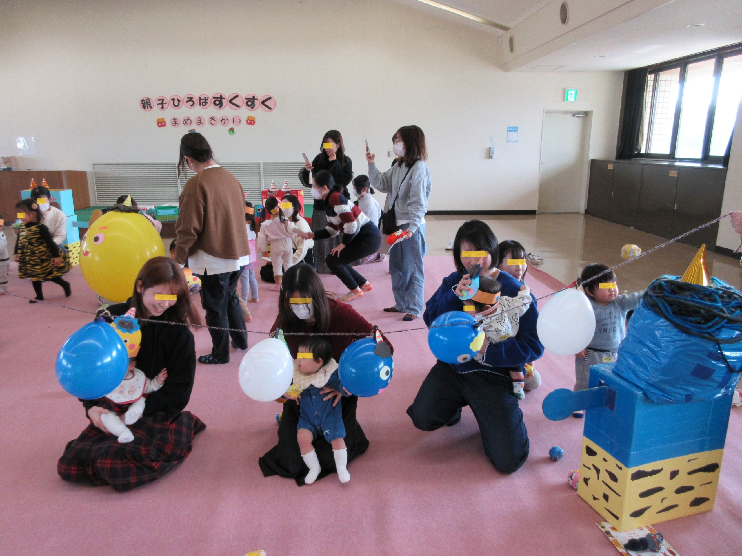 まめまき会で使用した大きい風船鬼は、次の日に中央児童館内の「すくすく」へ運び、遊びに来られた親子さんに遊んでもらいました♪