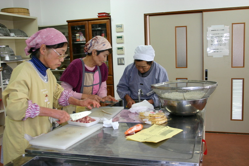 午前中は会員全員で調理をします。今日のメニューは「炊き込みご飯、鮭のクリーム煮、小松菜とシラスのおひたし、スイートポテト」です。