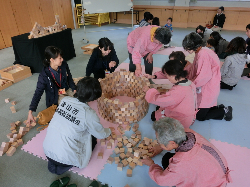 あゆみのみなさんと職員で、たくさんの積み木を重ねてみました!