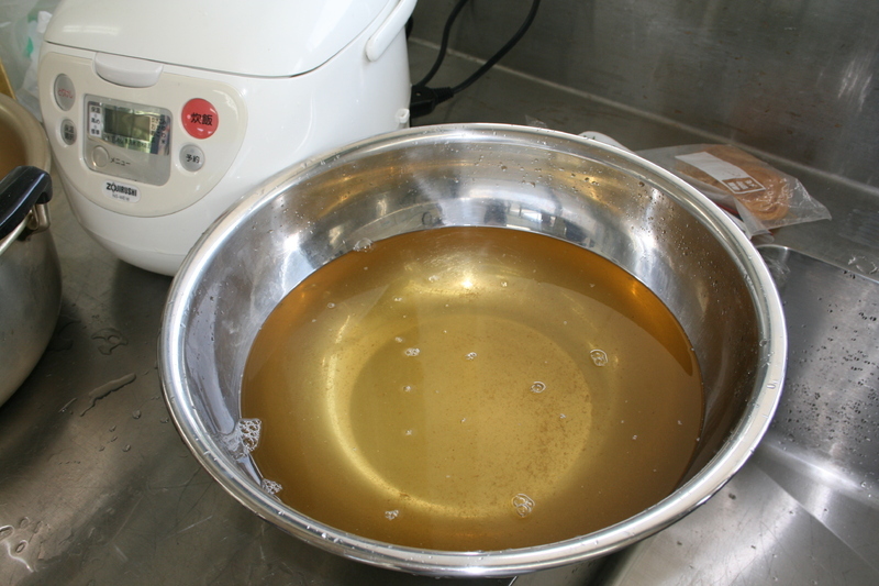 乳清は、水と合わせてご飯を炊きます。