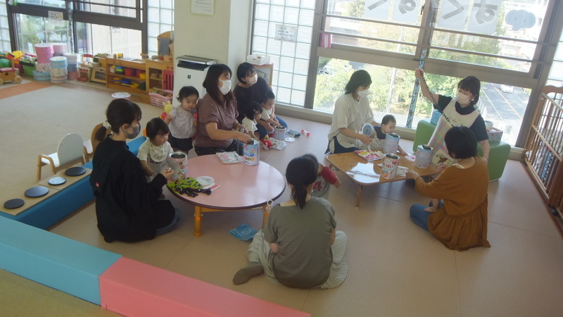「すくすく」にある手作りおもちゃが子どもたちに人気で、お母さん方から「どうやって作るんですか?」と聞かれることも多く「一緒に作ってみよ~」と材料を全てすくすくで準備して、お母さん方に作ってもらいました(^^)/