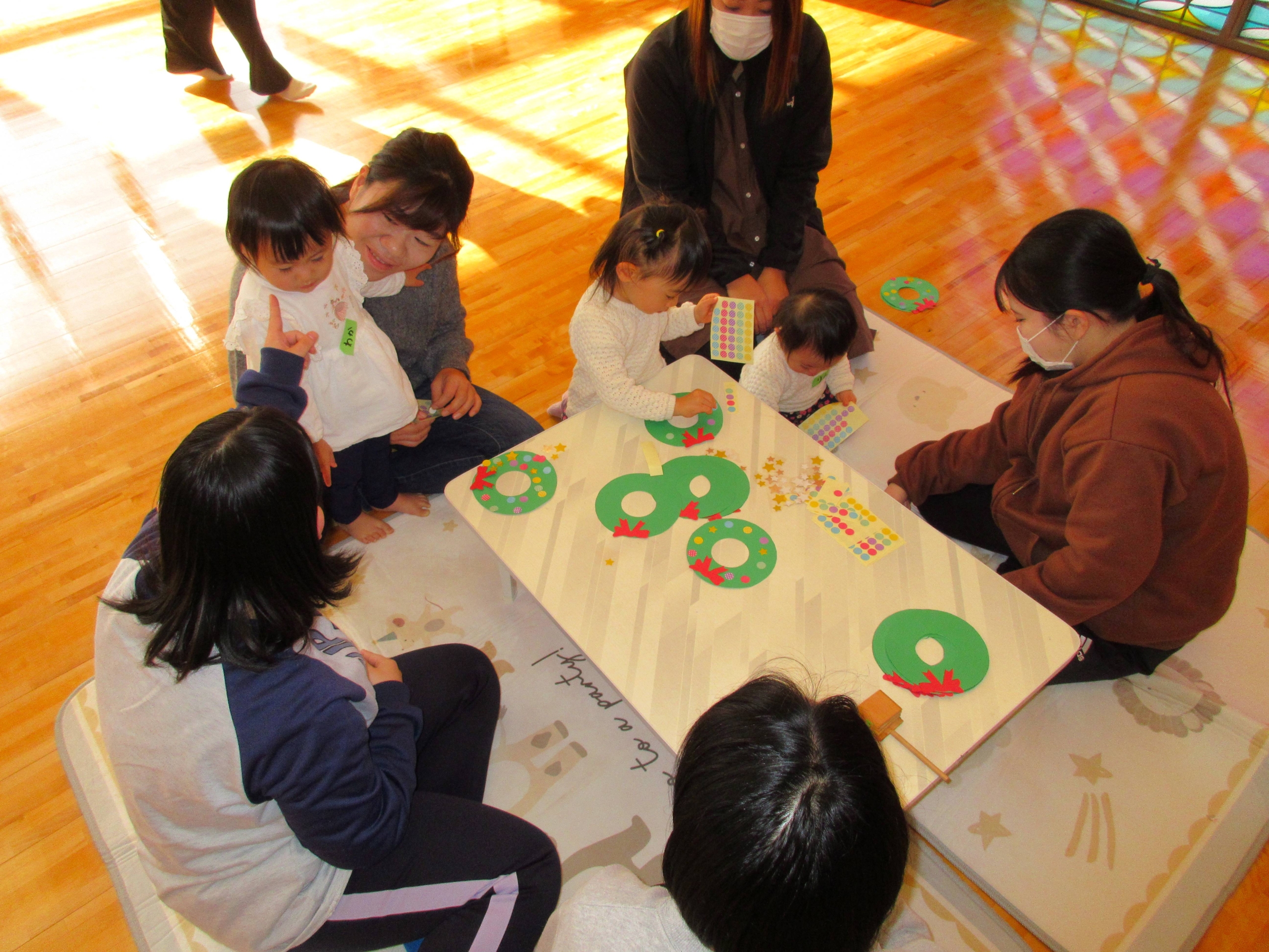 12月なので、可愛いリースを作るコーナーや、ボールプールもあり、子どもたちが好きな場所へ行って遊んでいました。