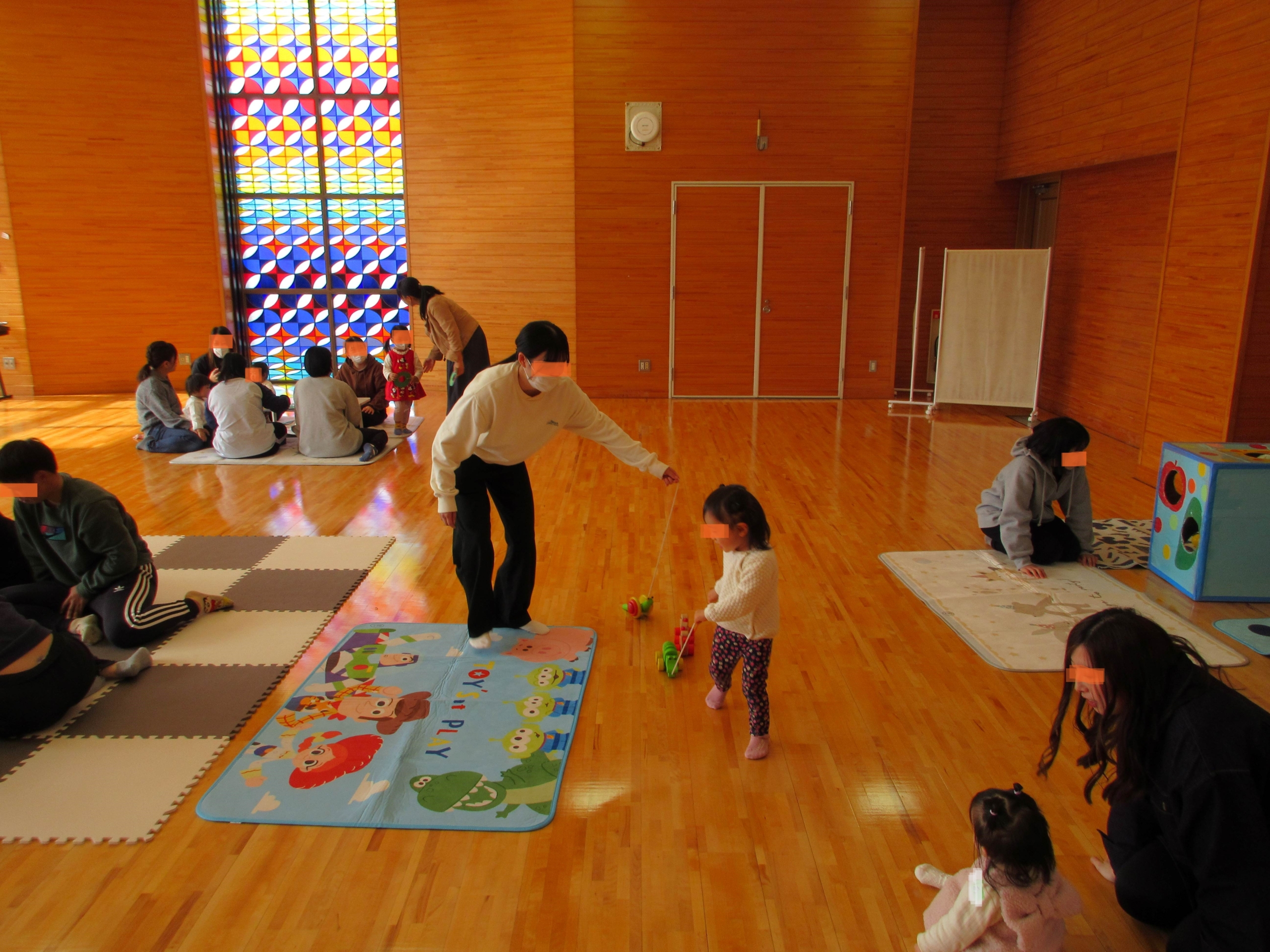 令和7年度は、中央児童館と行動で「サツマイモの苗植え」「サツマイモ掘り」や、すくすく親子講座「ふれあい遊び」11月・12月と、美作大学児童学科の学生さんと親子さんが一緒に楽しむ時間を計画することができ、大変有意義な時間を過ごすことができました。
