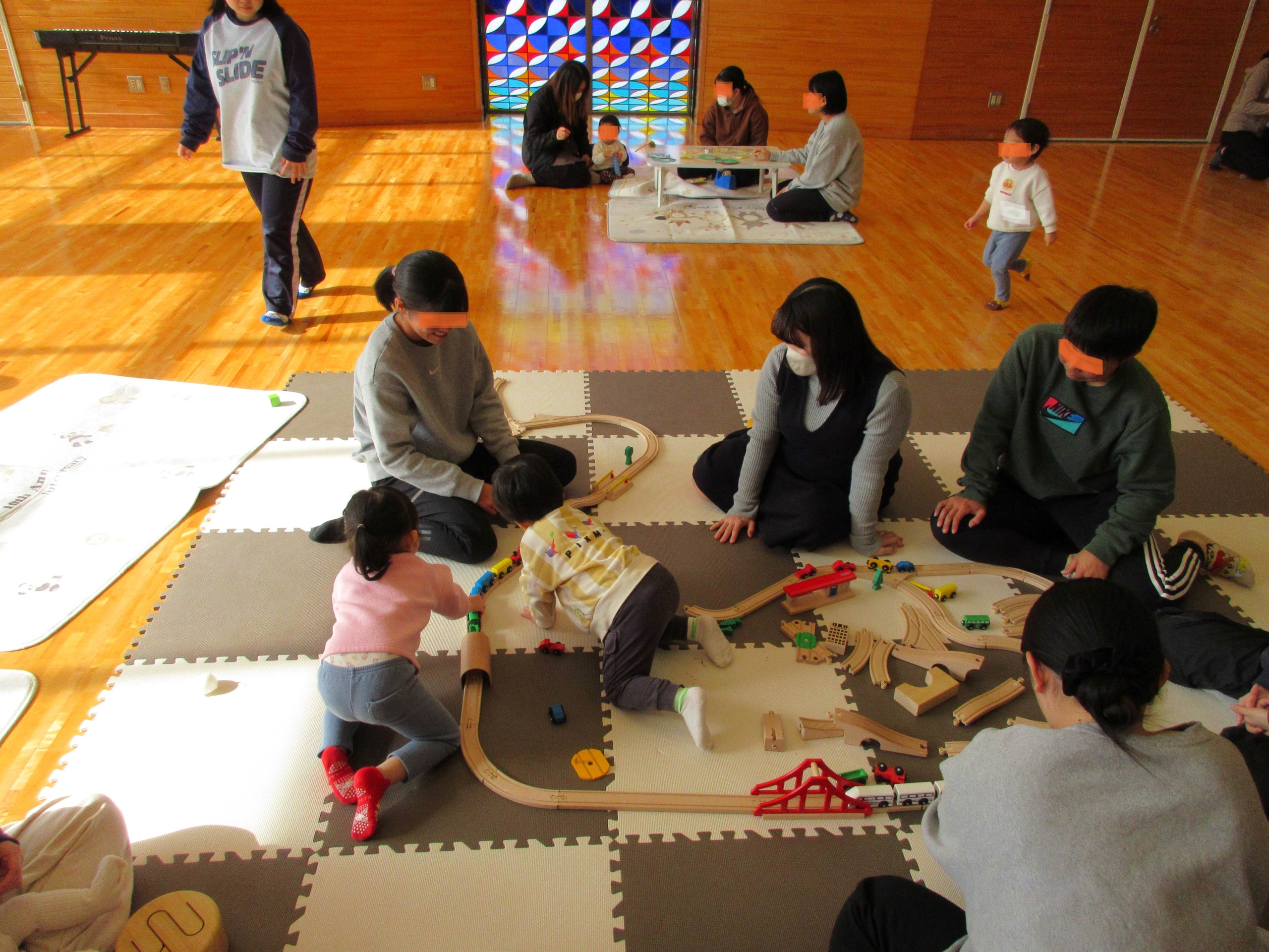 お家や「すくすく」にはない玩具もたくさんあって、子どもたちは学生さんと一緒に楽しく遊んでいました。