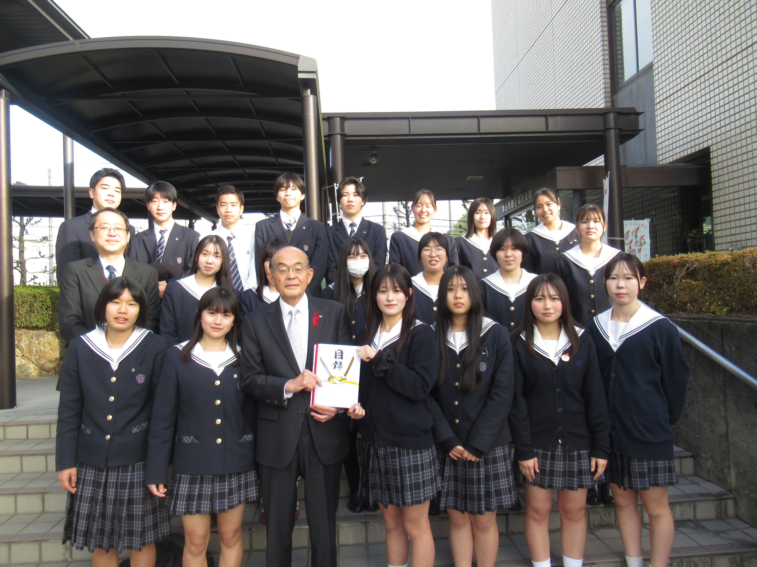 12月22日(月)岡山県美作高等学校 福祉医療コース2年生から「赤い羽根共同募金」への寄付をいただきました!