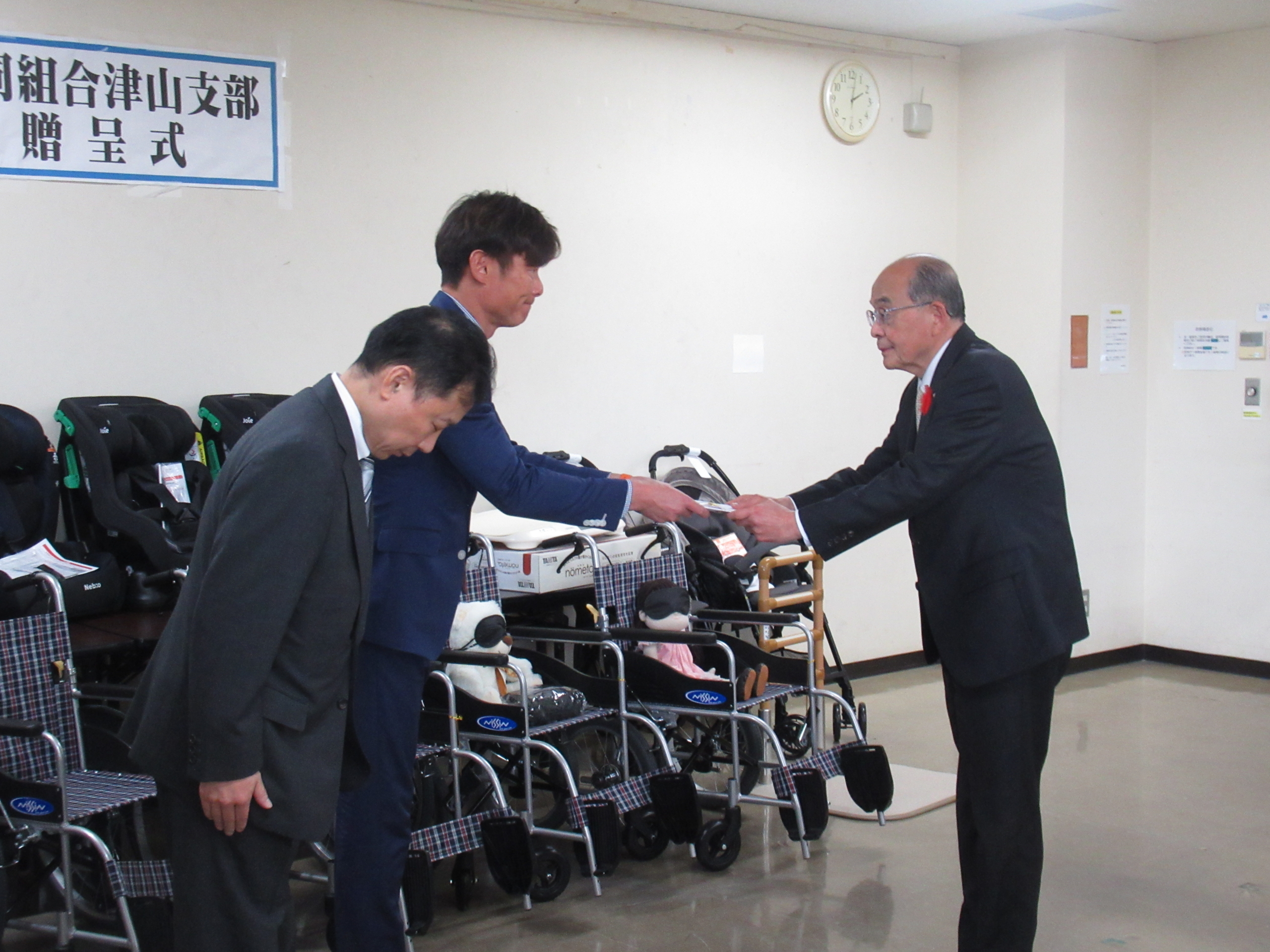岡山県遊技業協同組合津山支部様から本会へ、車いすやチャイルドシートをはじめ多数の福祉用具等についてご寄付をいただきました。この度のご寄付は、昨年に引き続き30年目となります。