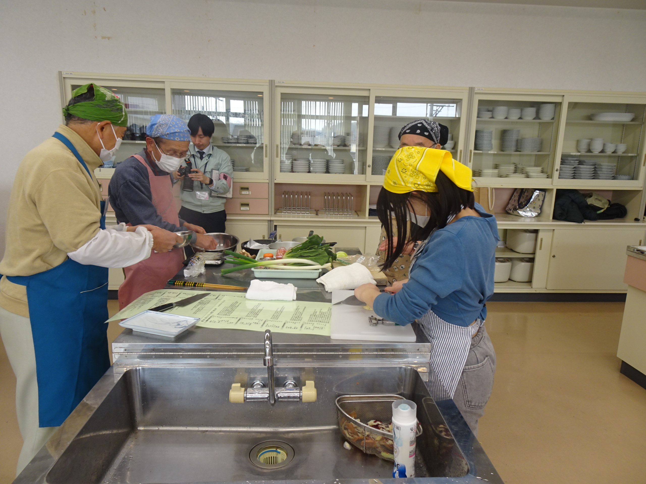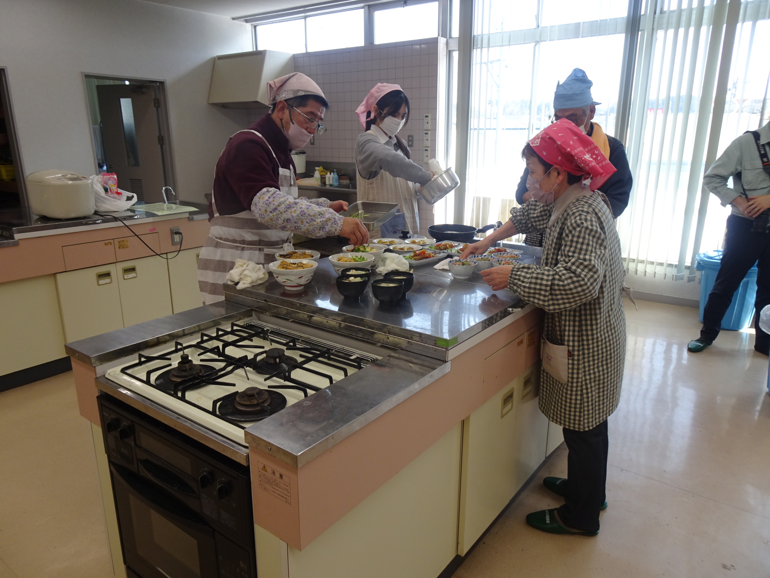 津山東高校の生徒たちは、教室の高齢男性と積極的にコミュニケーションを取りながら、調理や配膳を一緒に行ってくれました。