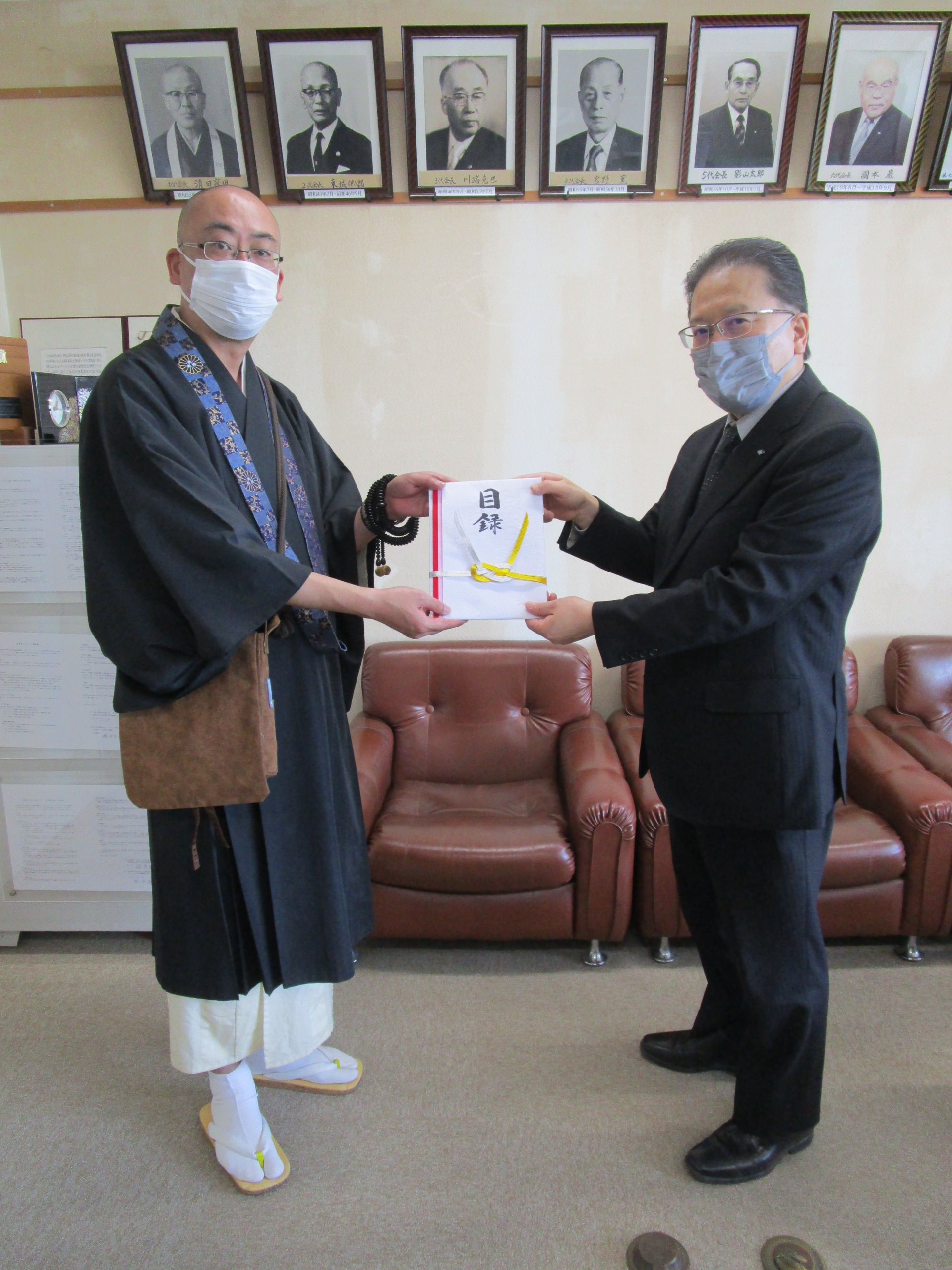 令和8年4月3日(金)、津山市仏教会様より交通遺児激励のためのご寄付をいただきました。